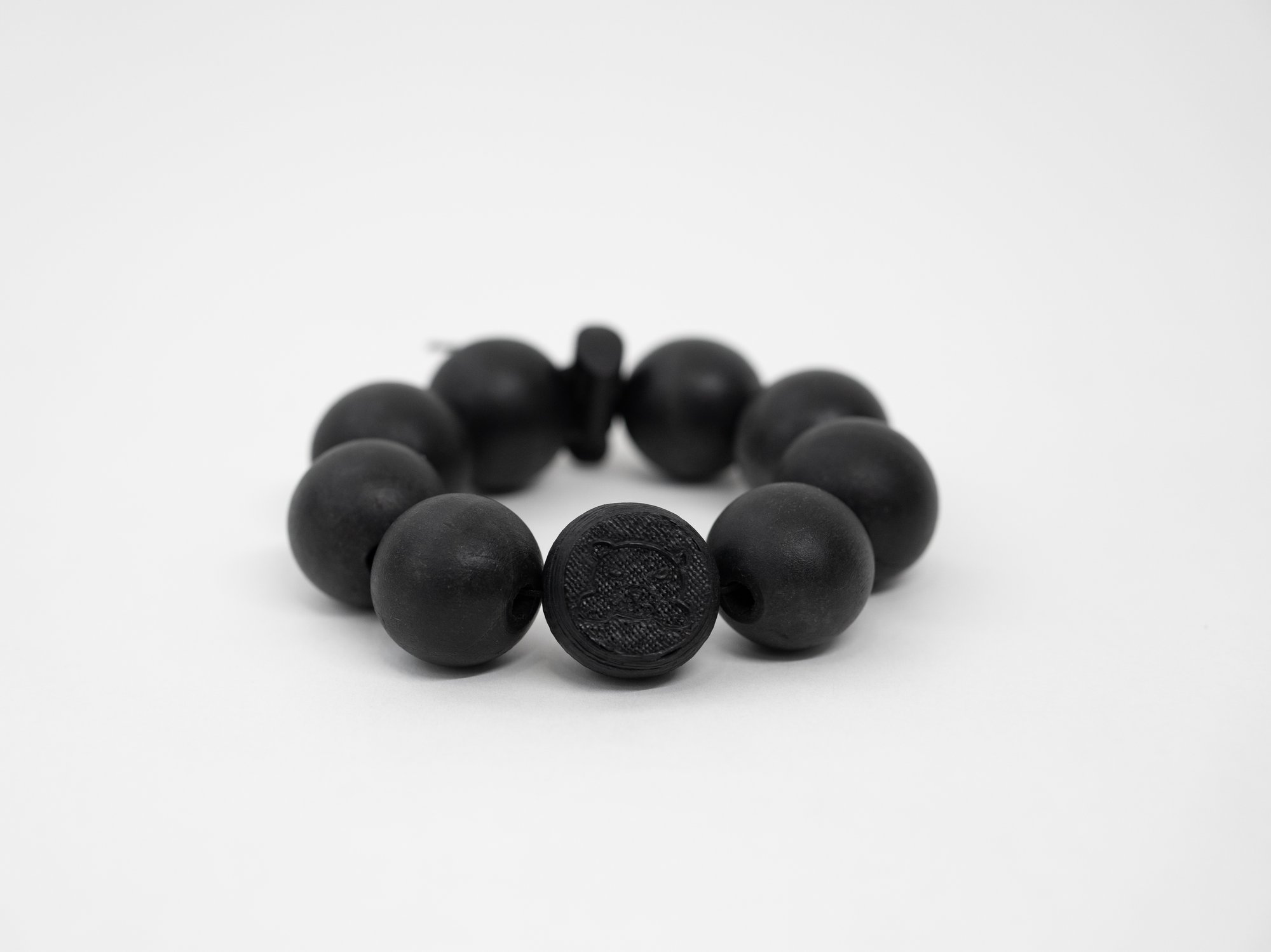 Tap to share, easily programmable bead bracelet. All Black 30mm beads with a vintage aesthetic, for modern use. The installed NFC bead has a many uses, such as sharing contact information, access control and unlocking locks.